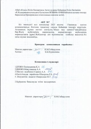 "К.Қадыржанов атындағы Қызылқия ЖОББМ"КММ бойынша наурыз айында асхана тексеру барысында бракераждық комессияның жасаған