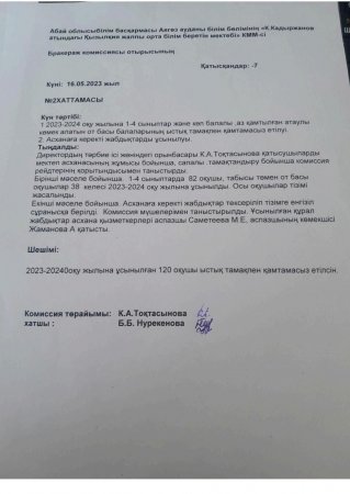 Қазақстан Республикасы Оқу-ағарту министрлігі Қр премьер-министрі Ә.А.Смайловтың 2023-жылғы 27-сәуірдегі 15-11/Б-272 тапсырмасына