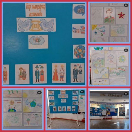 1мамыр - Қазақстан халықтарының бірлігі күніне орай ақпарат тақтасы безендіріліп, сурет көрмесі болды.