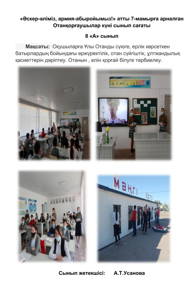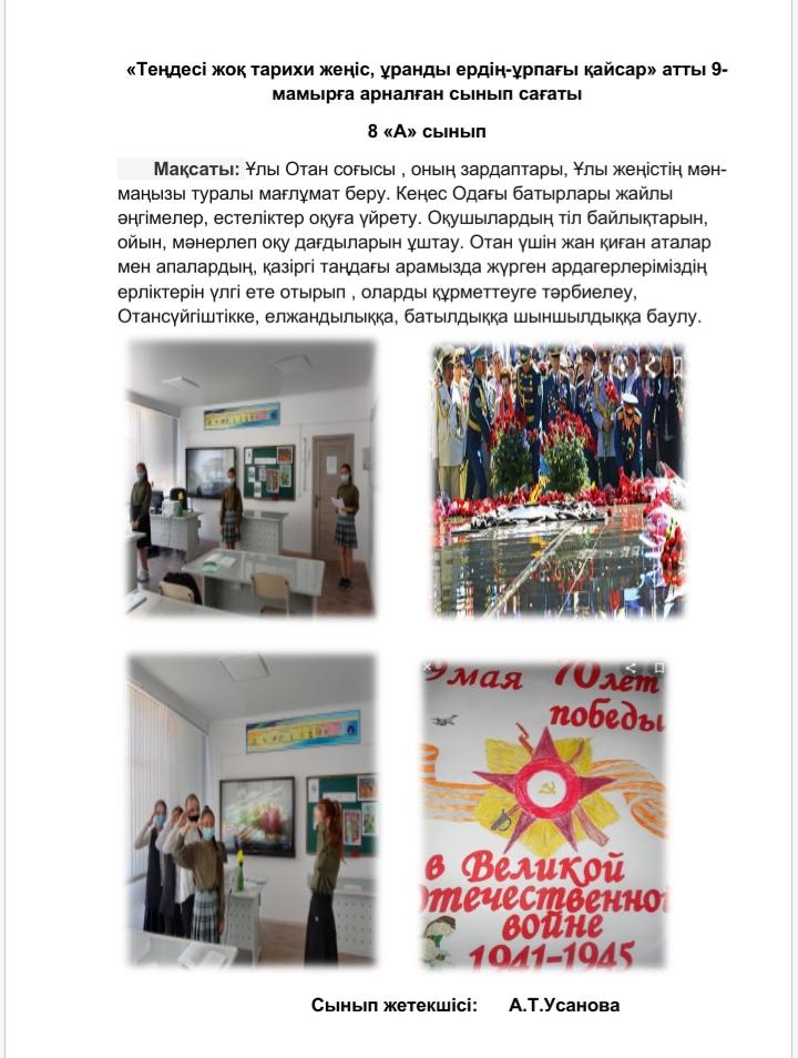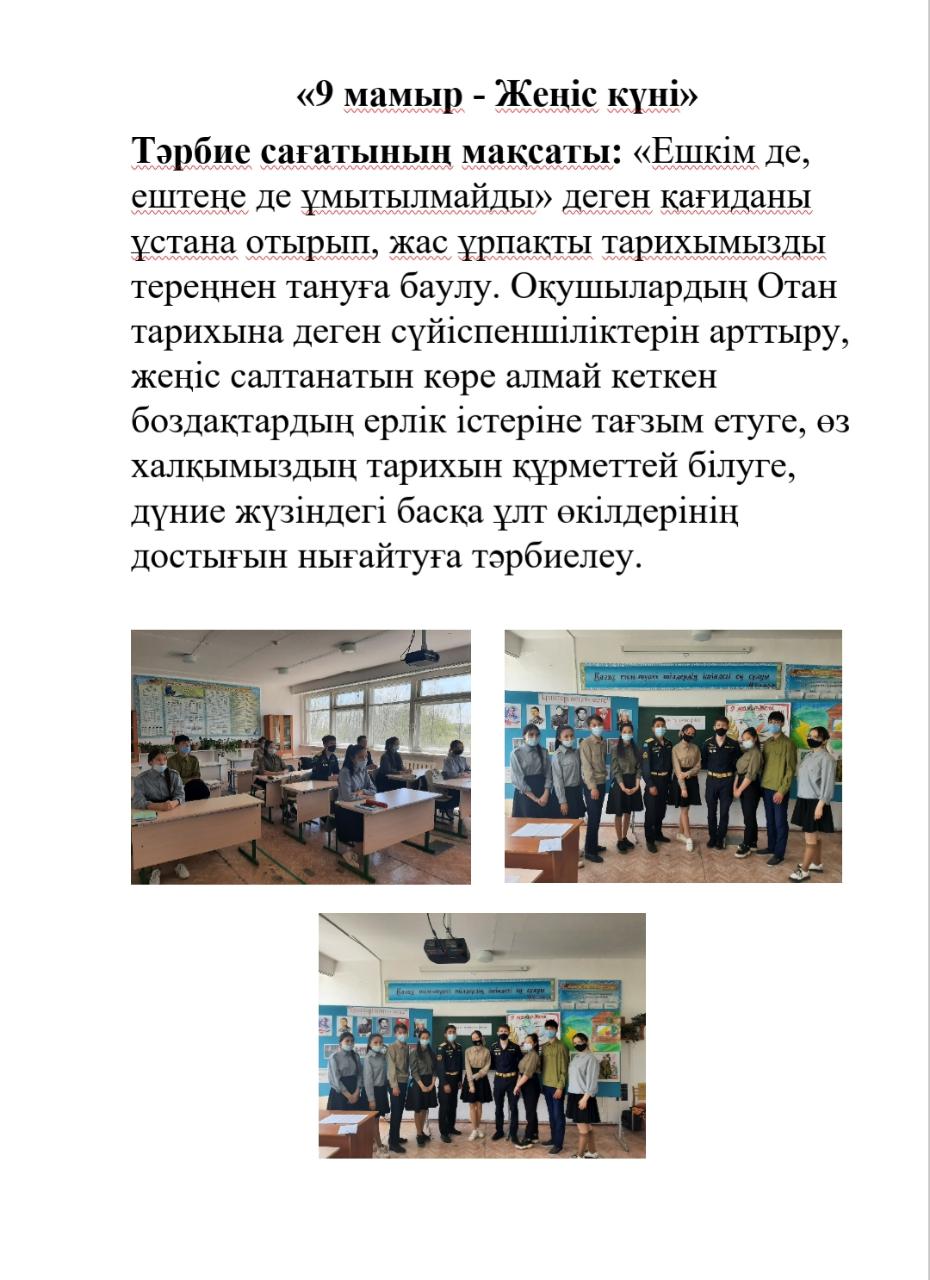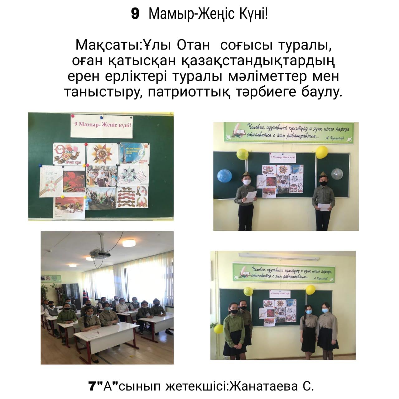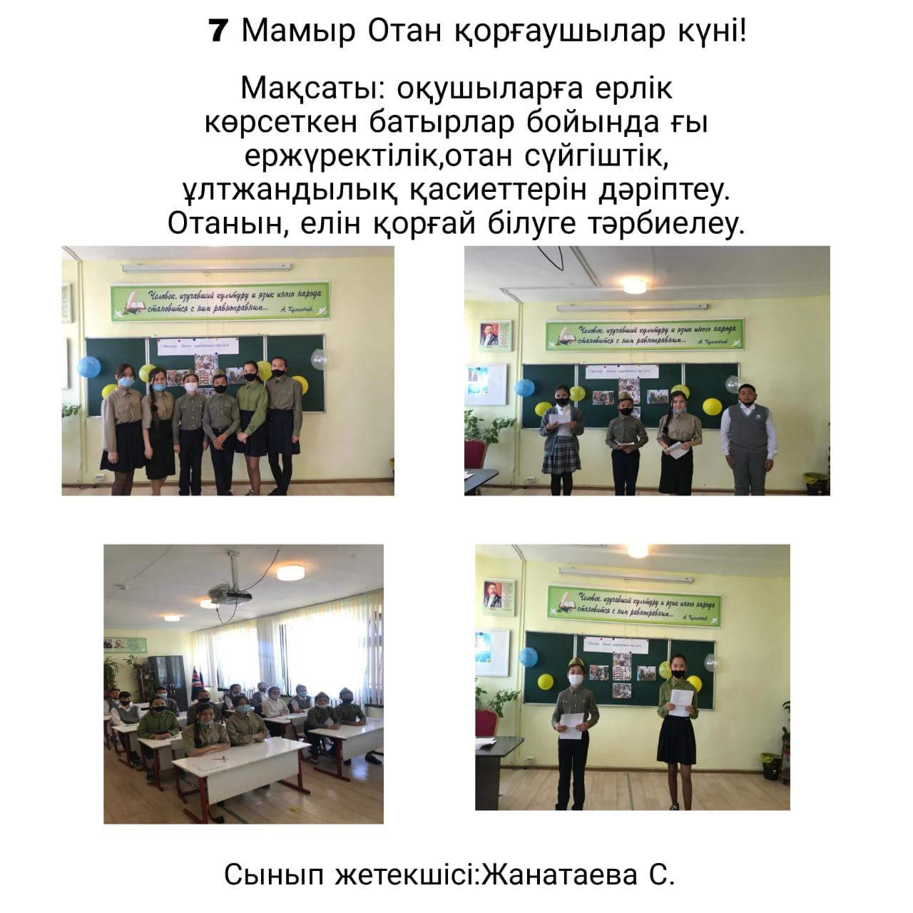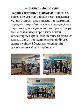 » 7 мамыр Отан қорғаушылар күні мен 9 мамыр Ұлы Отан соғысы "Жеңіс" күніне арналған "К.Кадыржанов атындағы Қызылқия жоббм" КММ-де өткізілген іс-шаралар