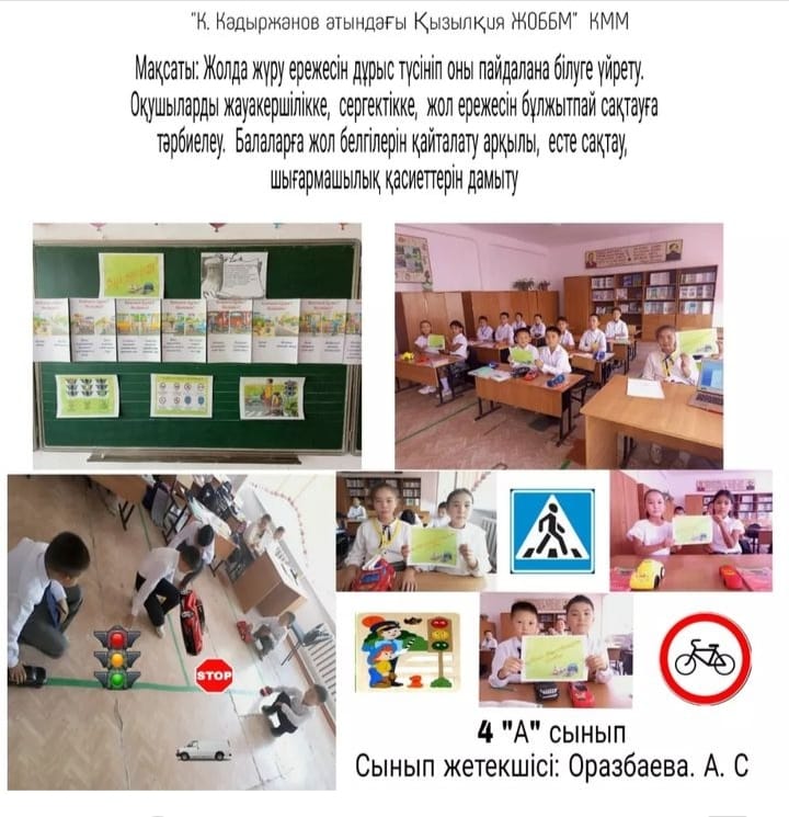 "К.Қадыржанов атындағы Қызылқия жалпы орта білім беретін мектебі" КММ-нiң 2022-2023 оқу жылындағы "Абайлаңыз балалар" iс-шара аясында жаңа оқу жылы қарсаңында жедел-профилактикалық iс-шаралардың жылдық жоспары құрылып, сыныптарда тәрбие сағаттары өткізiлдi.Бұл тәрбие сағатының мақсаты - балалардың жол-көлік жарақатының алдын алу. Жалпы шара барысында оқушыларымыз жол ережесін қатаң сақтау арқылы адам өмірінің маңызын ұғынып, жол көлік оқиғасының алдын алудың маңызын түсiндi.