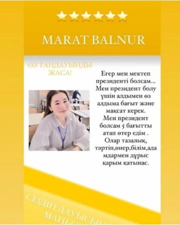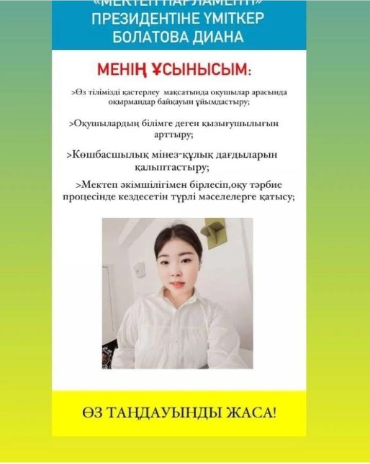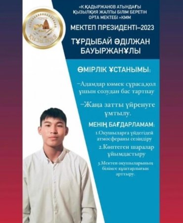 » "К.Қадыржанов атындағы Қызылқия жалпы орта білім беретін мектебі" КММ Мектеп Президенті -2023