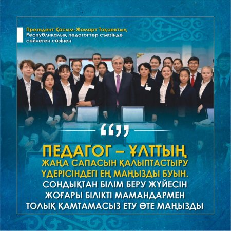 Президент Қасым-Жомарт Тоқаевтың Республикыалық педагогтер съезінде сөйлеген сөзінен