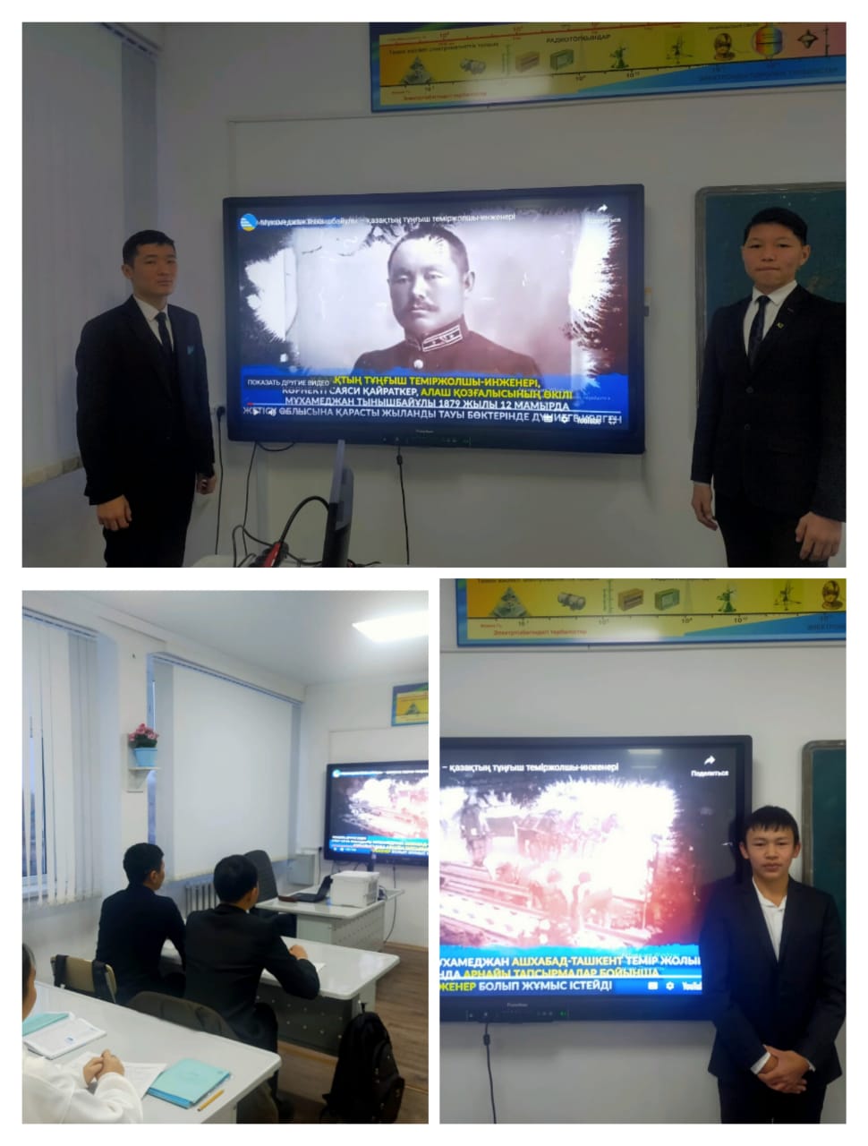 12.12..2023ж. Абай облысы білім басқармасы Аягоз ауданы бойынша "К.Кадыржанов атындағы Қызылқия жалпы орта білімі беретін мектебі" КММ де облыстық инновациялық - әдістемелік орталығы ҚР президенті Қ.К.Тоқаевтың "Тәуелсіздік бәріне қымбат" мақаласы аясында Алаш арыстарының асыл мұрасын игеруді жалғастыру мақсатында іс-шаралар ұйымдастыру бойынша 11 "А" сыныбында "Біріңғай тарих сабағы" өткізілді. "Мухамеджан Тынышпаев -қазақтың тұңғыш инженері" атты сыныптан тыс сағаты өтті. Қоғам қайраткерінің еңбек жолы мен қызметі жайлы ақпараттар беріліп, бейнебаян көрсетілді. Тарих және география пәнінің мұғалімі: Оралбаева С.К