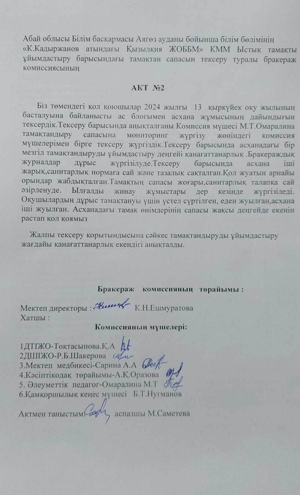 Абай облысы білім басқармасының Аягөз ауданы білім бөлімінің «К. Қадыржанов атындағы Қызылқия жалпы орта білім беретін мектебі»