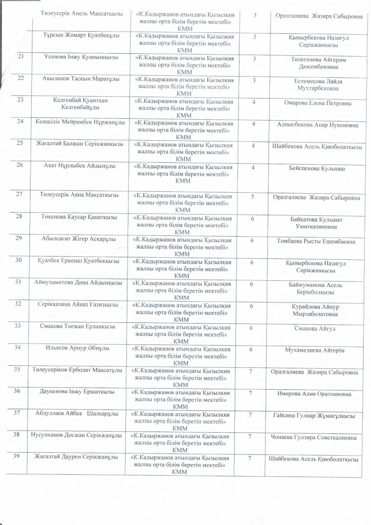 Абай облысы білім басқармасының Аягөз ауданы білім бөлімінің «К. Қадыржанов атындағы Қызылқия жалпы орта білім беретін мектебі»
