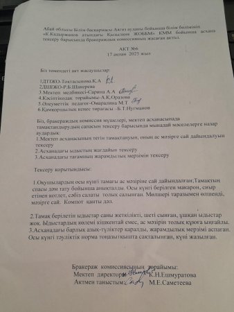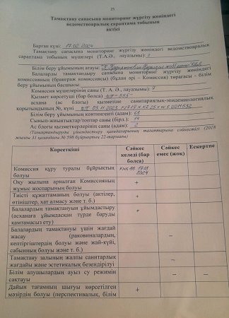 Ыстық тамаққа мониторнигжүргізу бойынша сараптама