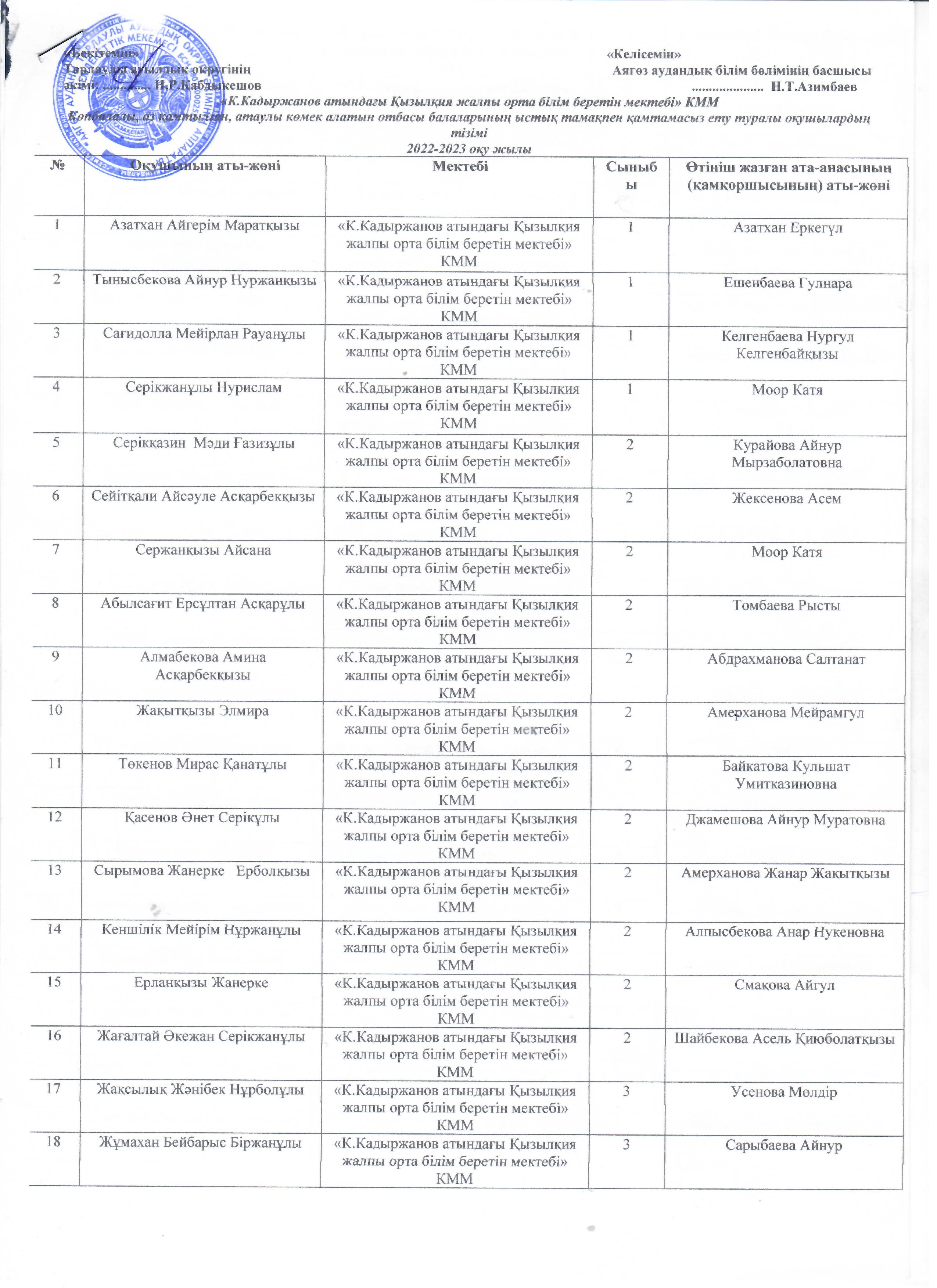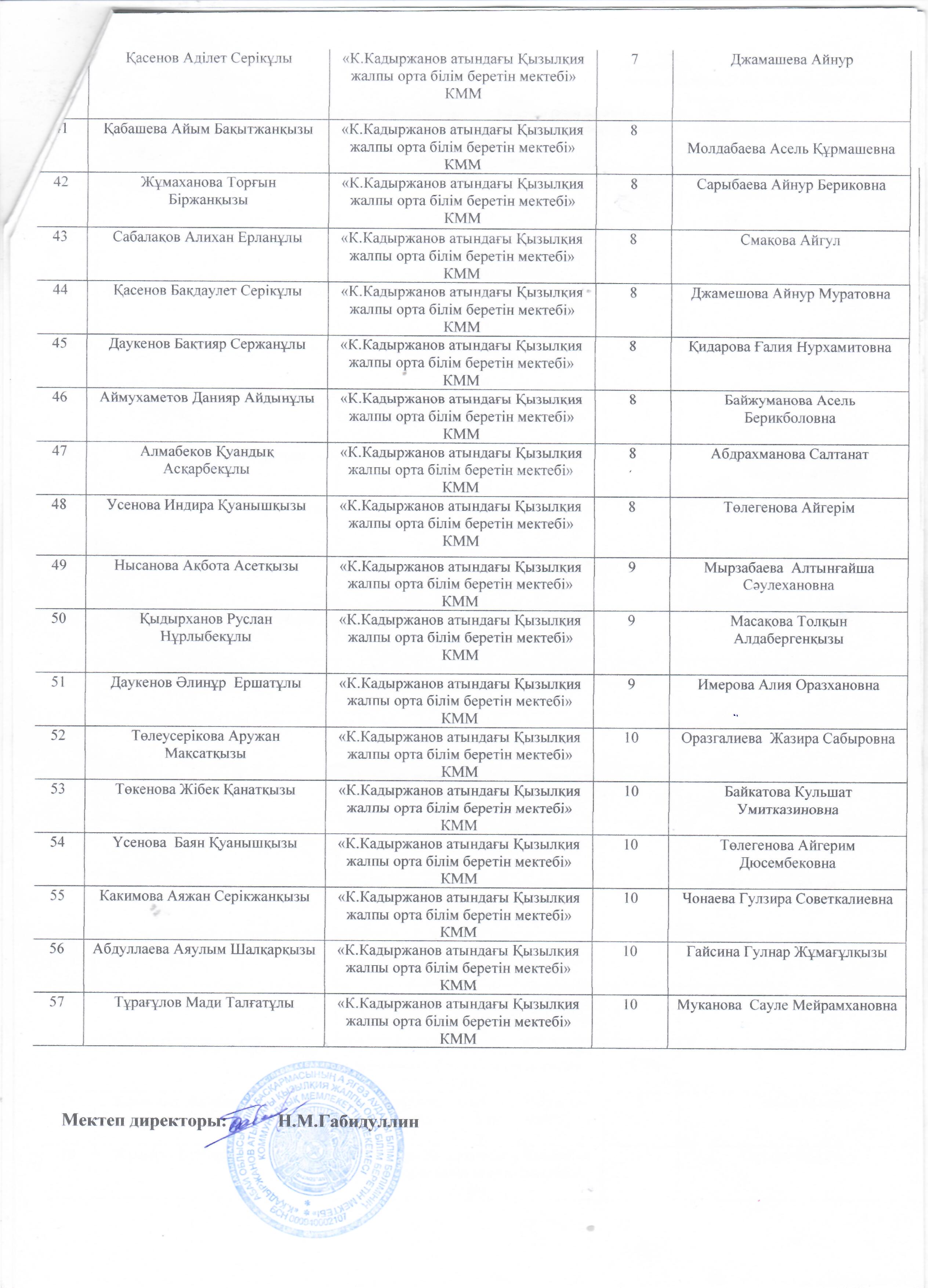 Абай облысы білім басқармасының Аягөз ауданы білім бөлімінің «К. Қадыржанов атындағы Қызылқия жалпы орта білім беретін мектебі»