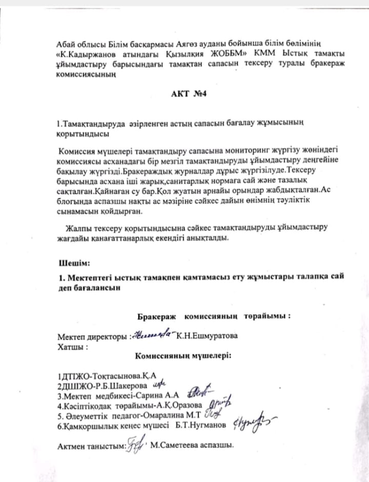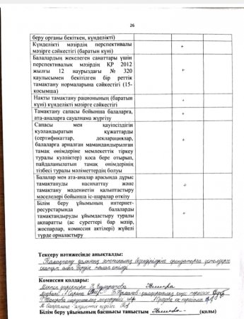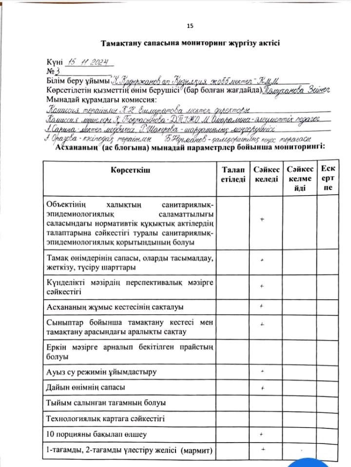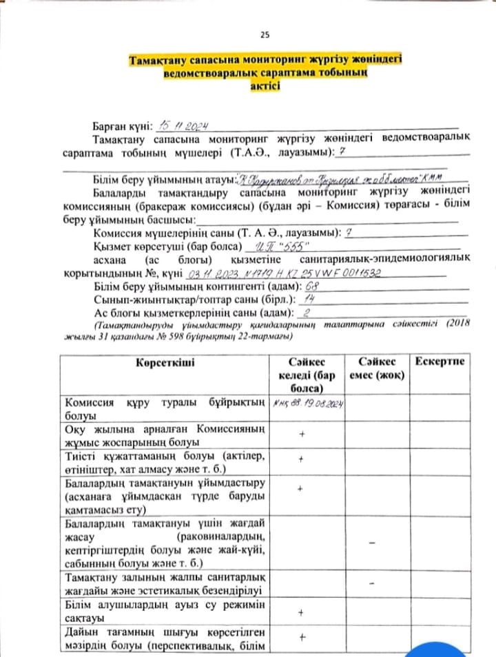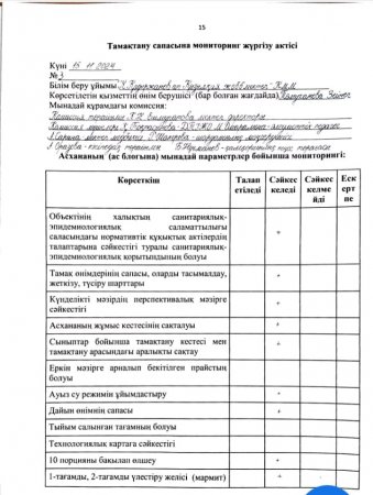 » Тамақтану сапасына мониторингі