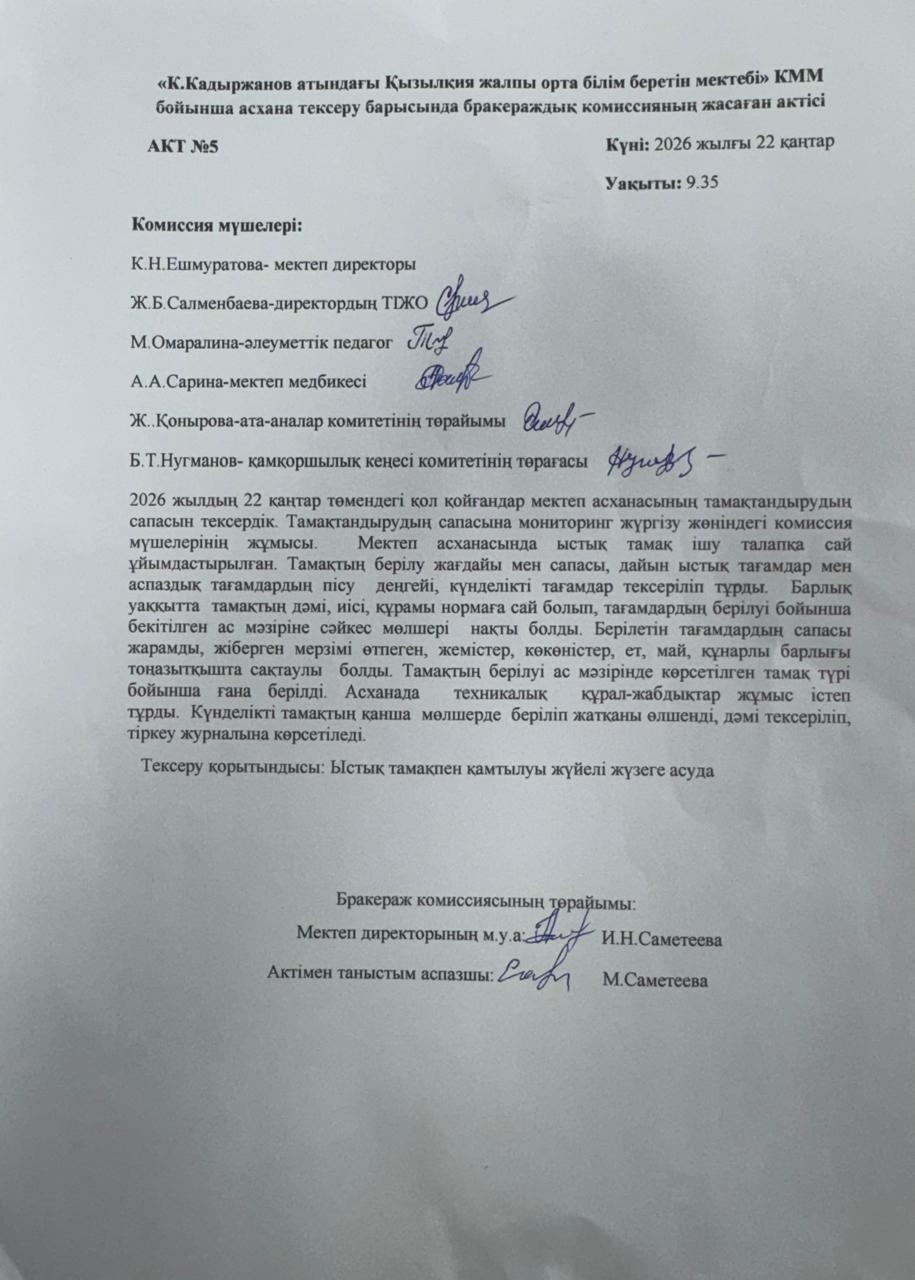 Ыстық тамақ АКТ № 5