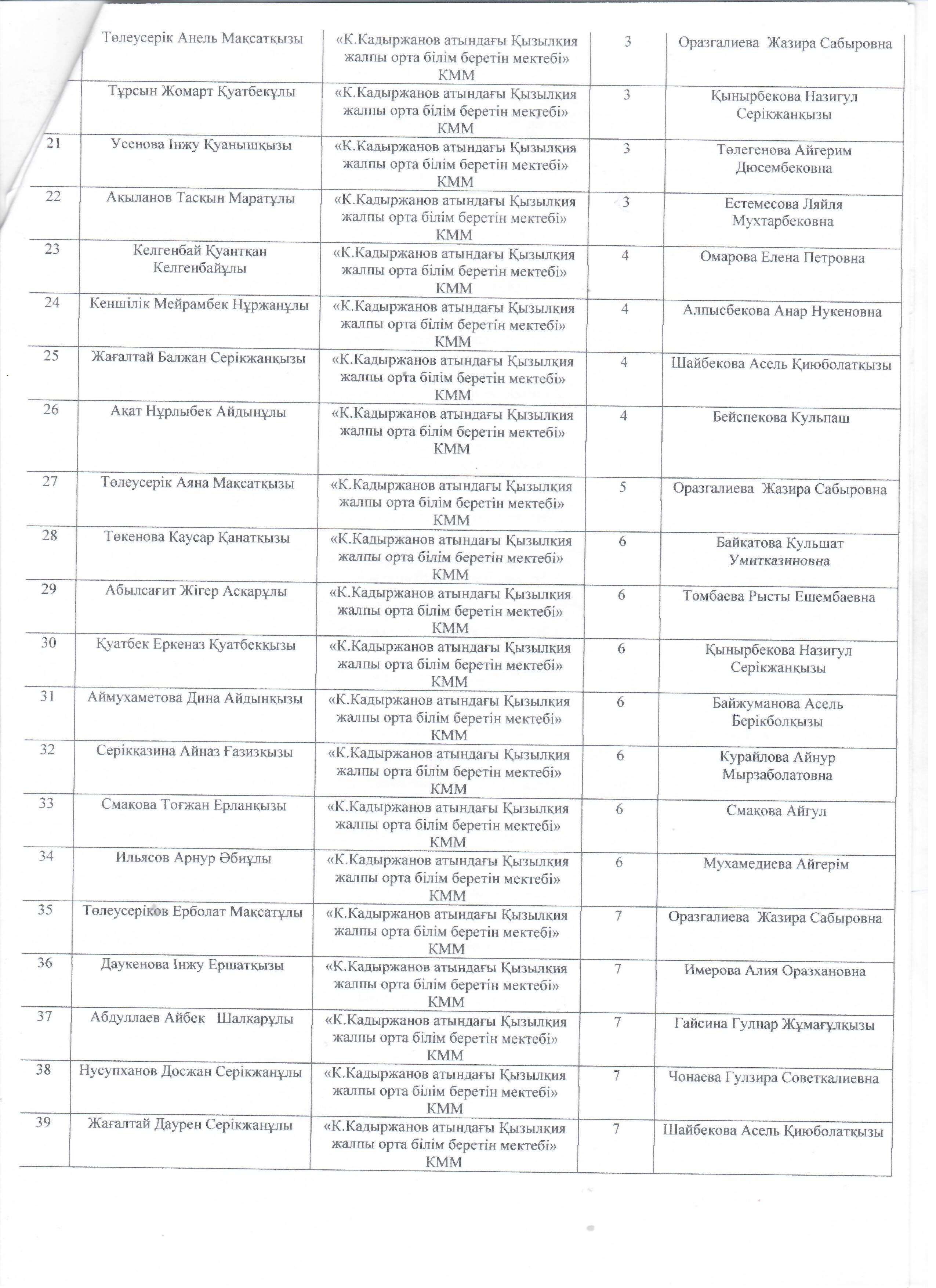 Абай облысы білім басқармасының Аягөз ауданы білім бөлімінің «К. Қадыржанов атындағы Қызылқия жалпы орта білім беретін мектебі»
