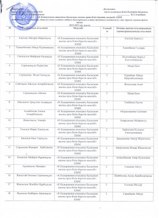 » 2022-2023 оқу жылы көпбалалы,азқамтылған,атаулы көмек алатын отбасы балаларының ыстық тамақпен қамтамассыз ету туралы оқушылардың тізімі.